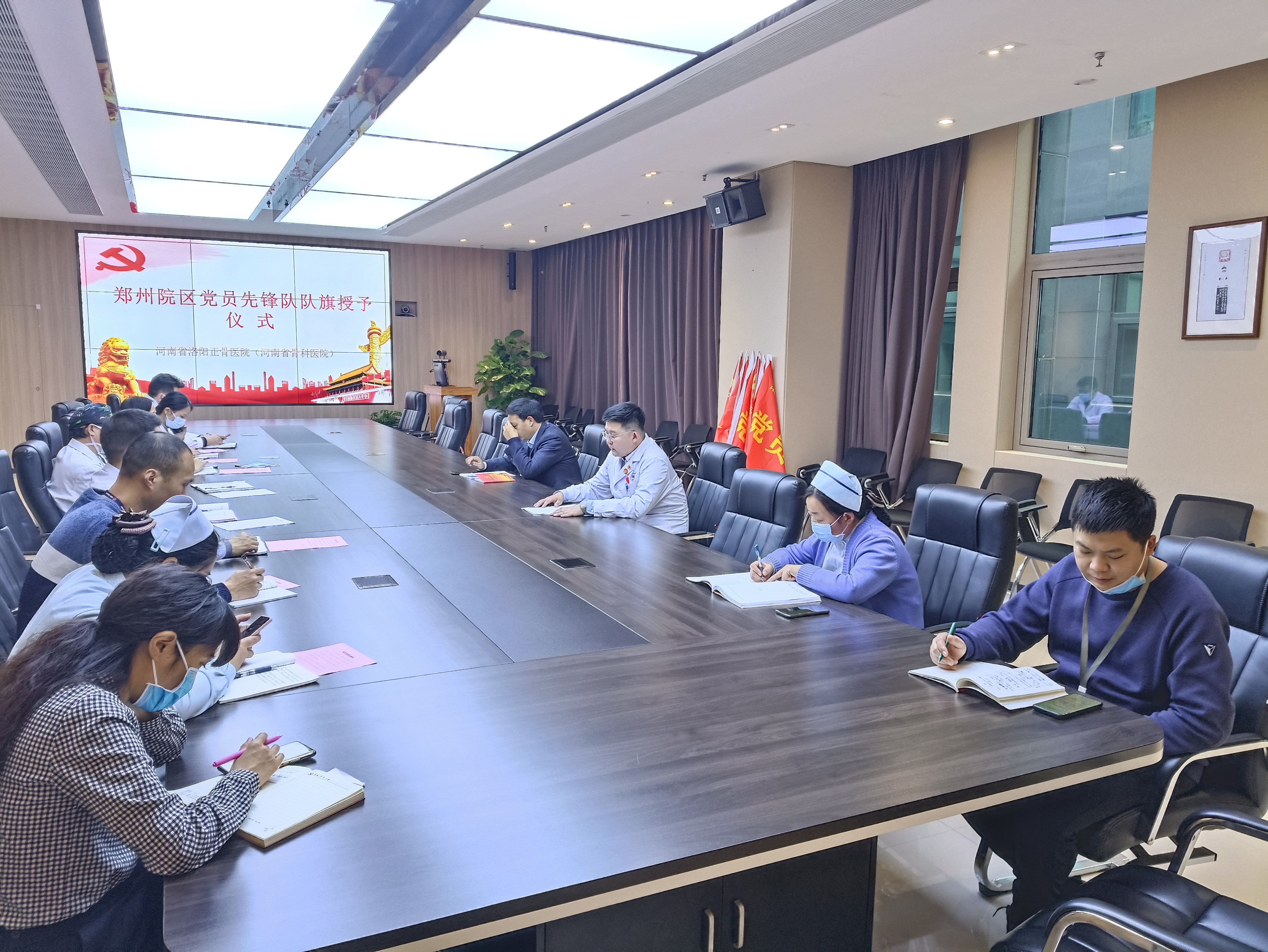 11月17日,郑州院区党总支在3007会议室举行院区党员先锋队授旗仪式,党总支办成员、总支支委成员、郑州院区各党支部书记、委员代表参加会议,会议由院区党总支书记赵移畛同志主持。