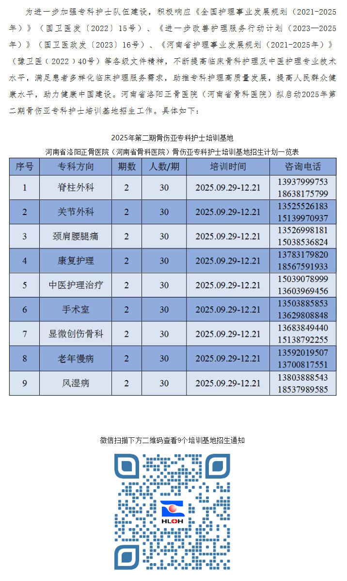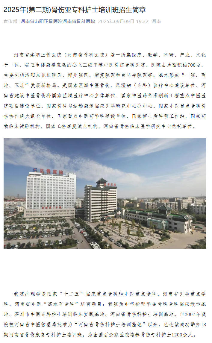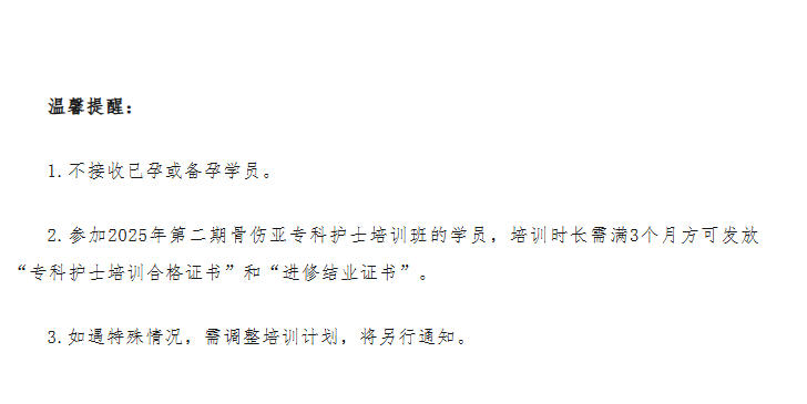 2025年(第二期)骨伤亚专科护士培训班招生简章