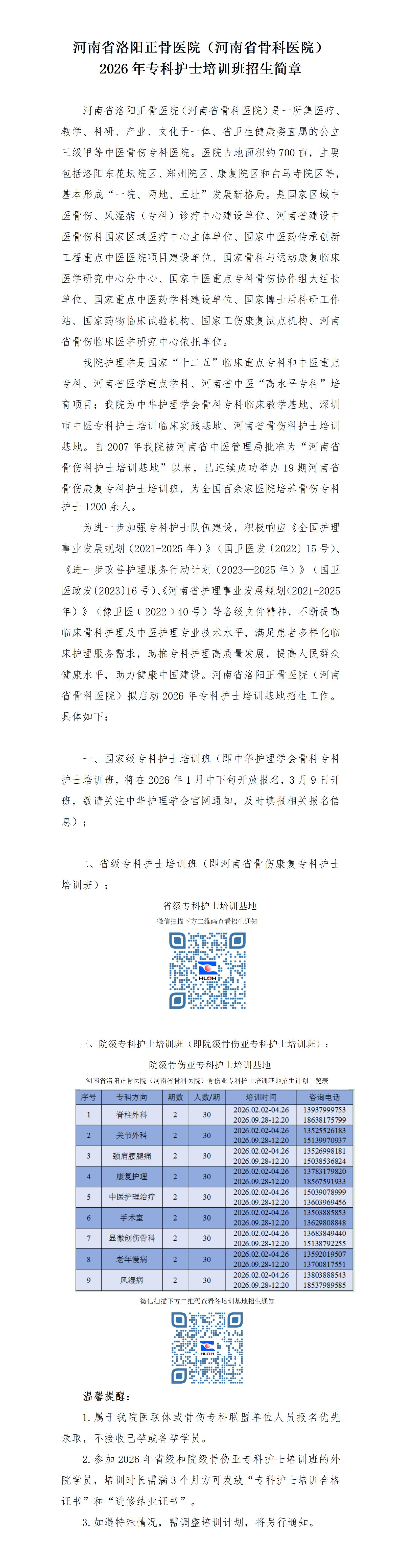 河南省洛阳正骨医院(河南省骨科医院)2026年专科护士培训班招生简章