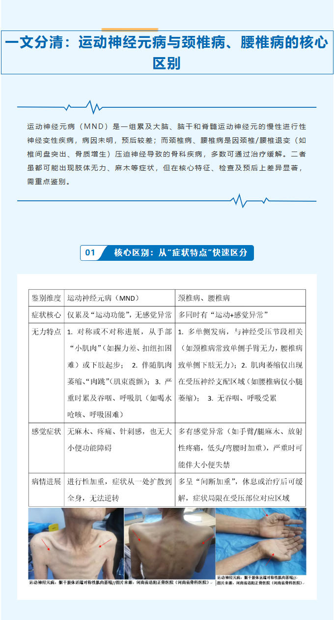 一文分清:运动神经元病与颈椎病、腰椎病的核心区别