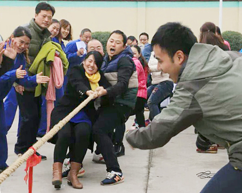 为了迎接“家里”喜开二度梅,18日当天举办了趣味运动会。运动项目有跳绳、托乒乓球快走、夹气球横向运动、拔河等。行政代表队获得拔河比赛的冠军,王国强摘取了跳绳的桂冠。