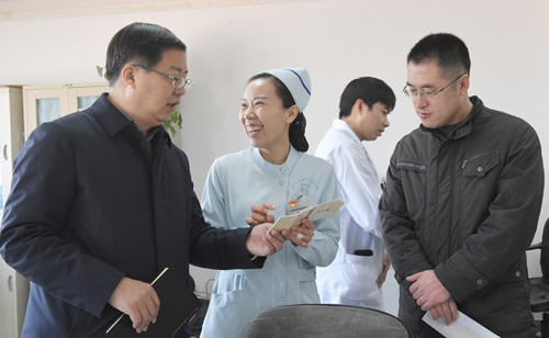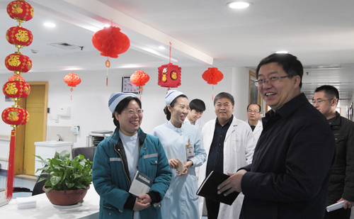 2月13日新春前夕,我院副院长曹向阳带领医护相关部门负责人到病房逐个巡查。