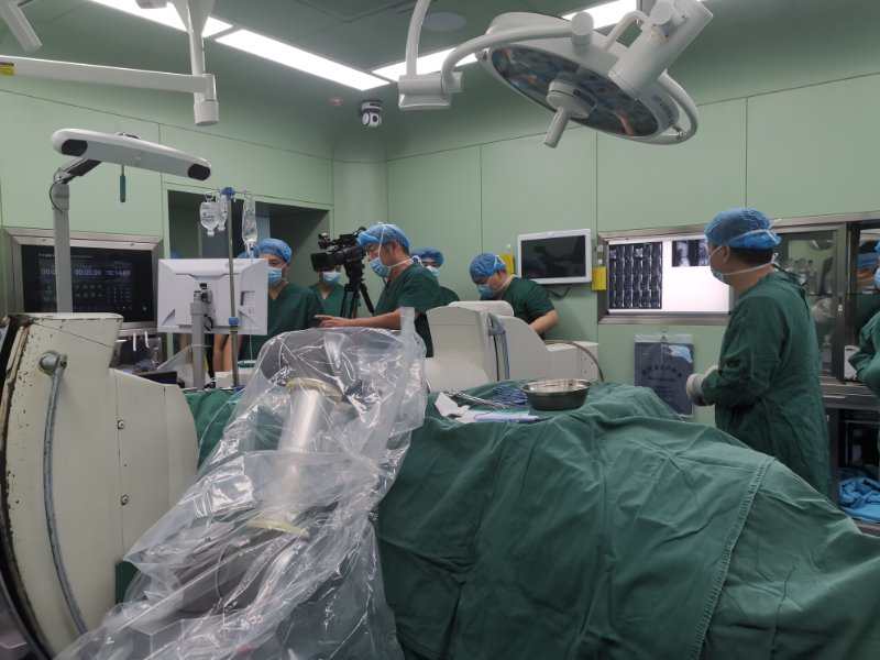 义诊的同时,我院郑州院区管委会委员朱卉敏教授在漯河市骨科医院指导机器人完成脊柱疑难手术。