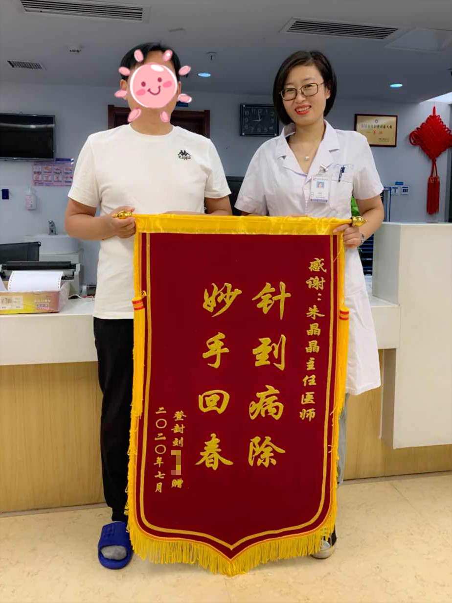 近日,一面写着“针到病除,妙手回春”的锦旗被送到了我院康复院区骨与关节康复科副主任朱晶晶的手上,与锦旗一同送来的,是来自登封市的刘先生对朱晶晶副主任治愈困扰自己多年旧疾的无限感激之情。
