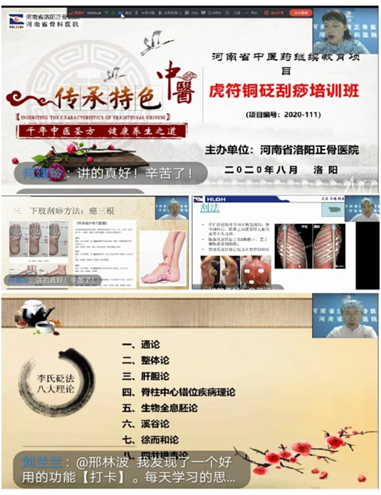 为推动中医药继续教育工作,拓展专业知识和技能,不断提高中医护理专业技术水平,8月18日下午,由我院承办的2020年度“河南省中医药继续教育项目——虎符铜砭刮痧”培训班如期举行,此次培训采用钉钉直播和实操演示相结合的形式进行。来自省内外的300多名护理同仁观看了直播视频,近60余人参加了实操演练互刮交流。