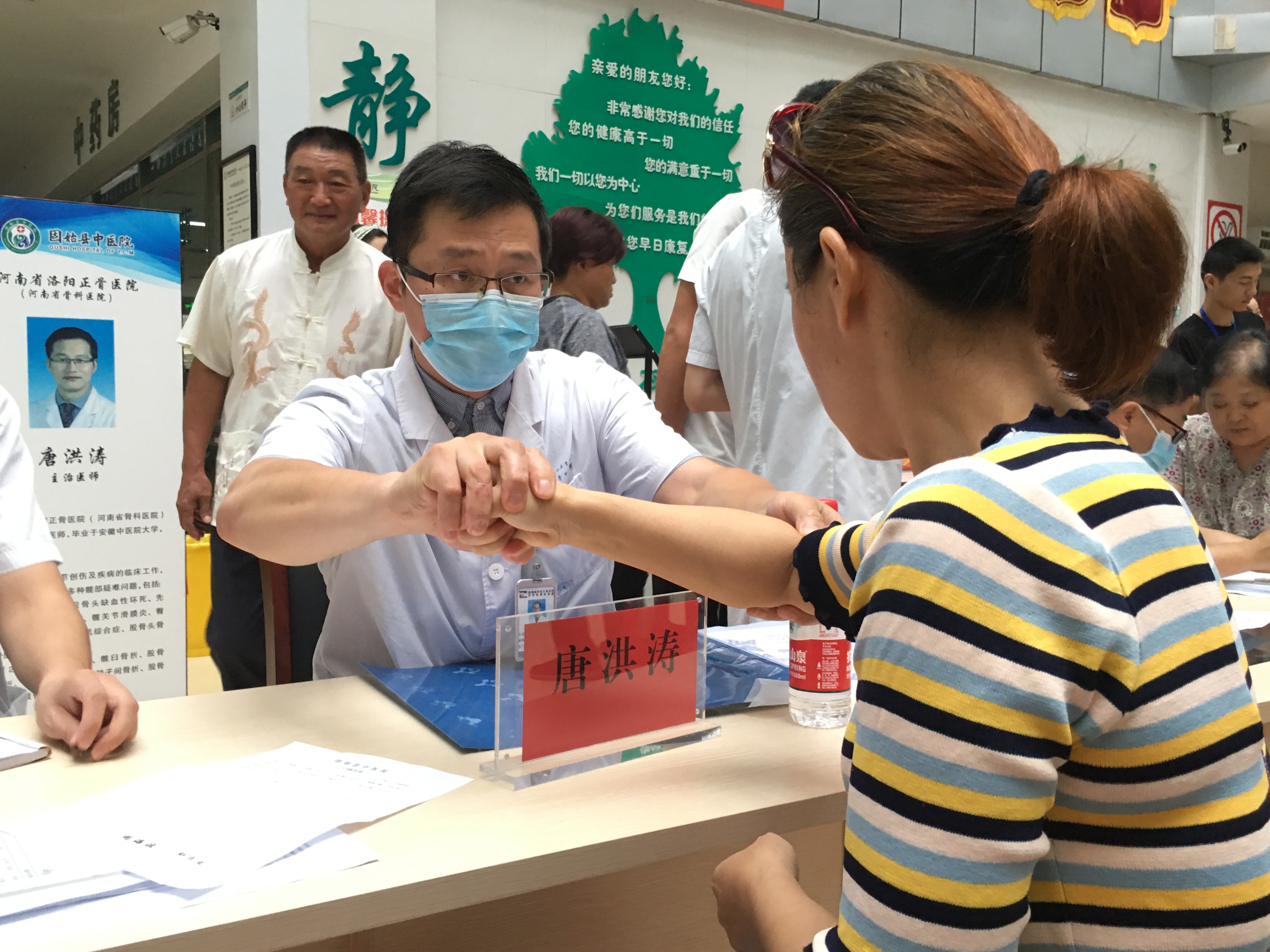 8月22日,由我院洛阳院区临时管委会委员、医务部主任司春阳带领我院康复科 门诊综合治疗科副主任夏厚纲、髋部损伤三科主诊组长唐洪涛、上肢损伤一科主诊组长张川、髋部损伤二科副主任医师倘艳峰、运动医学科关节镜科主治医师胡庆森、白马寺院区骨关节老年病科主治医师张波和在固始县中医院挂职副院长的我院脊柱外二科李磊博士组成义诊专家团队在固始县中医院开展“健康中原行?大医献爱心”志愿服务大型义诊专项行动。