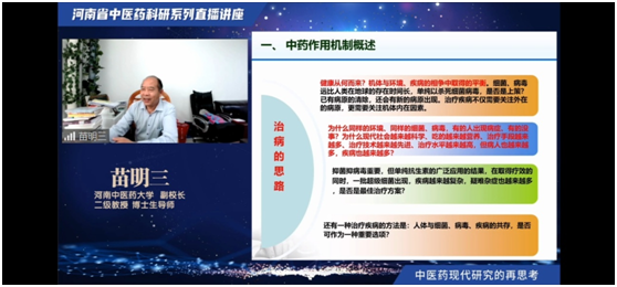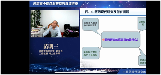 8月23日上午10点,第三期“河南省中医药科研系列直播讲座”成功举办,本期培训邀请到河南中医药大学副校长苗明三教授进行讲座,题目为《中医药现代研究的再思考》。