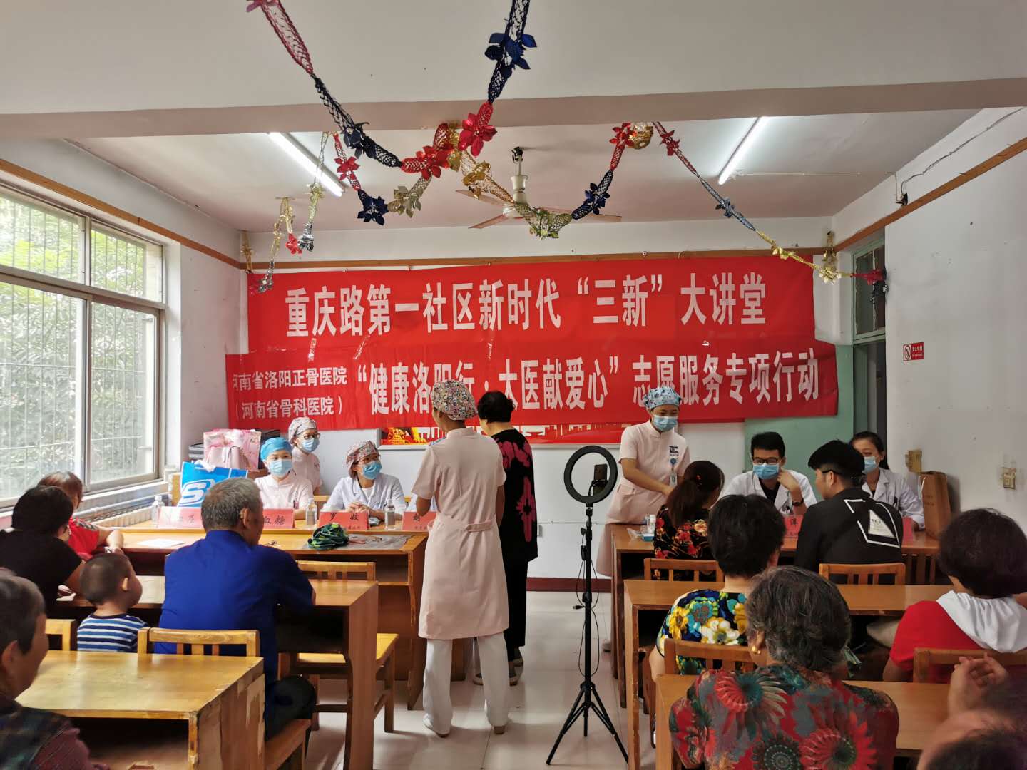 2020年8月21日,我院健康洛阳行义诊团队,来到了位于涧西区的重庆路第一社区,为社区居民普及骨健康知识,传播中医文化,为社区居民解决实实在在的病患疾苦。
