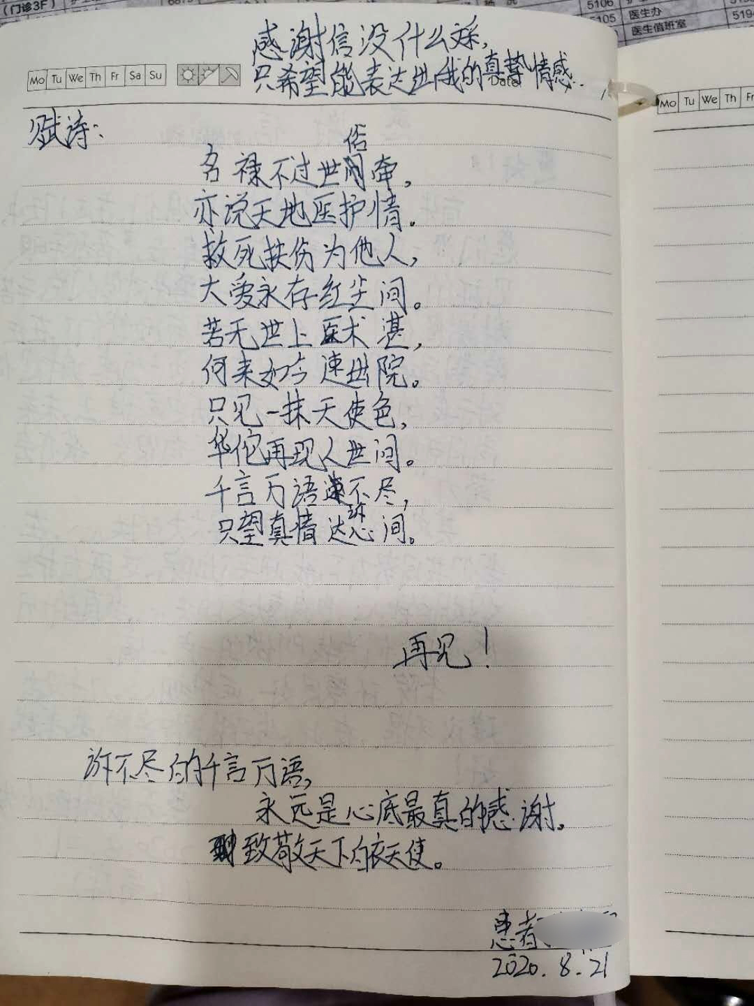 小姑娘情绪转好,笑意盈盈,极为高兴地说:“我又能回去继续沉醉于我的知识海洋了!”在出院之际,她难以抑制心中的感谢之意、感激之情,为颈腰痛四科写下了数封感谢信。