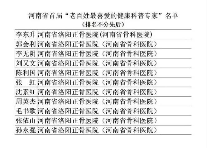 2019年7月15日,国务院正式下发《关于实施健康中国行动的意见》,全面实施十五项健康行动,其中首要行动为健康知识普及行动。为科学、有效实施健康中国行动,提高大众健康素养水平,医药卫生报社于2019年11月启动河南省首届“老百姓最喜爱的健康科普专家”评选活动,478位专家积极响应参加。9月1日,评选结果揭晓,共80位专家入选,我院独占11位,在所有入选单位中名列前茅。