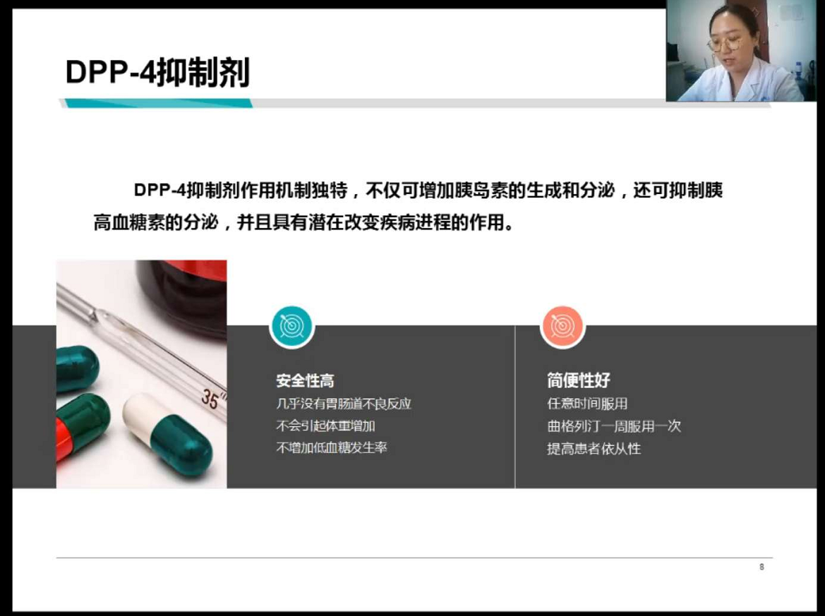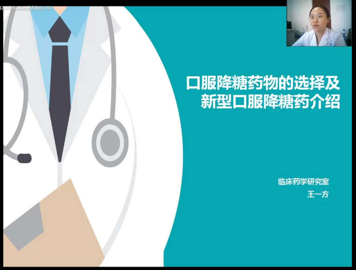 9月18日下午4点30分,合理用药知识培训——“临床药师和您一起探讨合理用药”第十二期钉钉线上开播。本期讲座由临床药学研究室王一方药师与大家分享《口服降糖药物的选择及新型口服降糖药介绍》。