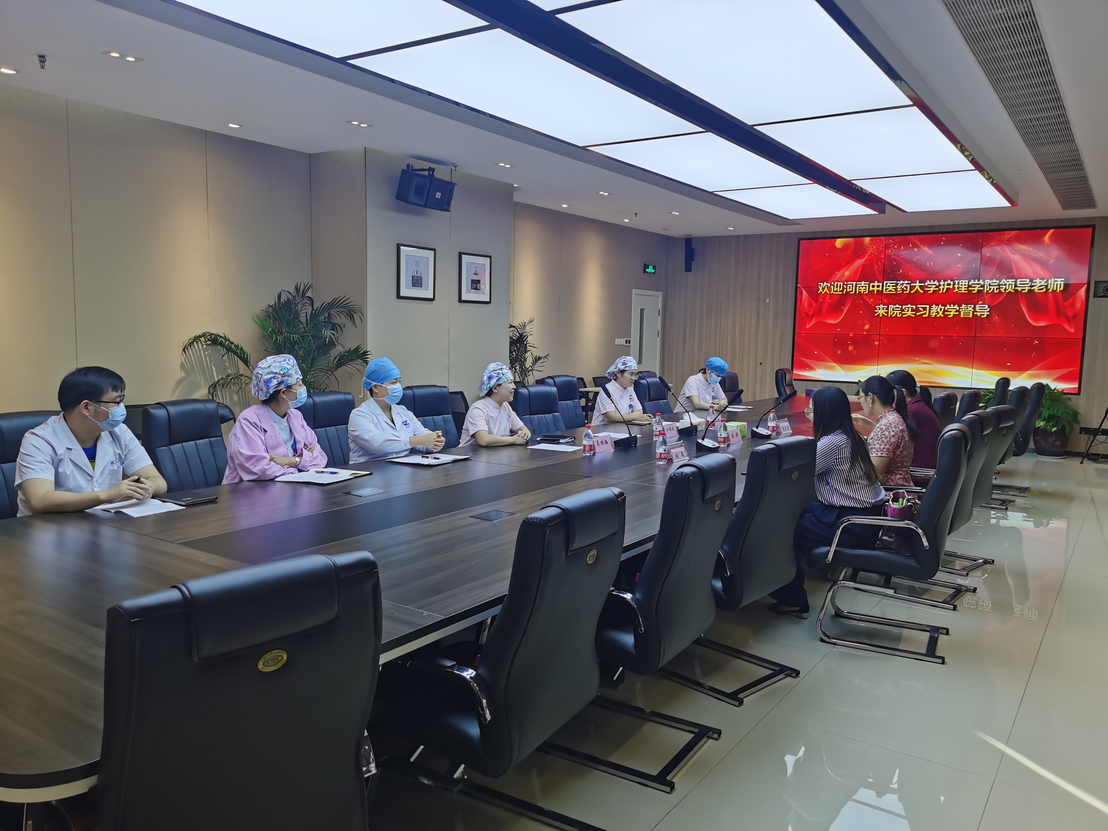 护理学院教学办张琼主任我院的实习带教工作表示赞许和肯定,包括疫情下的线上实习、学生培养等,反馈上届护生对我院的实习带教工作称赞有加,实习期间培养系统专业化,学生不仅学有所获,且感受到正骨大家庭的温暖与关怀。张琼主任还指出,今年起的护生有毕业论文答辩要求,希望医院能引导并培养学生的科研能力。
