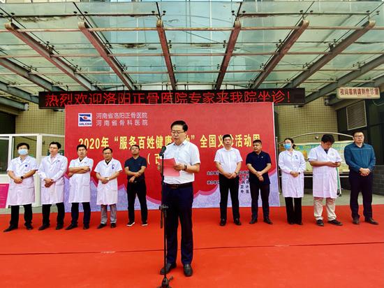 接着,河南省洛阳正骨医院(河南省骨科医院)副院长曹向阳在活动仪式上讲到:护佑人民健康,是我们的初心和使命。我们来到周口地区开展骨健康义诊活动,是为了方便本地百姓足不出县就能与省级专家面对面就医,为患者带来看得见的实惠。