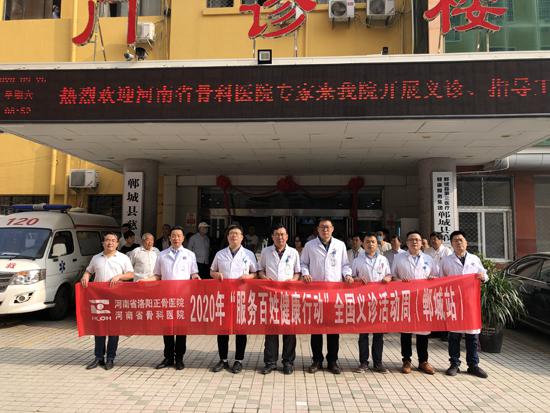 为落实河南省卫生健康委《关于开展2020年“服务百姓健康行动”全国大型义诊活动周的通知》安排,结合现阶段新冠疫情常态化防控工作需要,因地制宜,有重点、有针对性地开展适宜的义诊活动,方便群众在家门口看病就医。9月26日、27日,由河南省洛阳正骨医院(河南省骨科医院)副院长曹向阳带队,郑州院区管委会委员朱卉敏教授领衔的四十余位知名骨病专家团队,分别走进周口地区项城县、淮阳县、郸城县、西华县开展送医活动。在庆祝“第三个中国农民丰收节”的同时,为基层群众提供惠民医疗服务,为加强健康宣教,落实惠农措施,践行健康扶贫,打赢脱贫攻坚战助力!