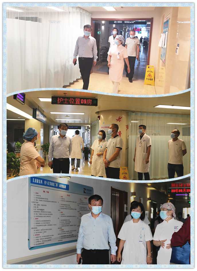 为确保双节期间院区各项工作安全稳定,9月29日清晨,副院长秦立峰带领医院质量管理部、物业中心等行政后勤部门负责人到康复院区开展节前安全巡视工作,及时排查和解决各类事故隐患。康复院区管委会副主任张志杰、委员王志伟等人陪同督导。