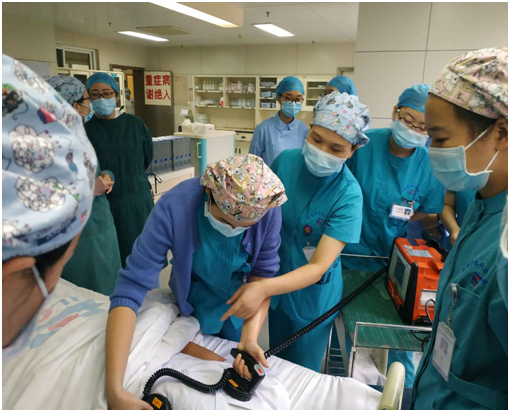 同时,院内急救小组进行紧急拉动,9号楼3楼一名患者突发呼吸心跳停止,须紧急抢救。我院急救小组人员接到电话后,反应迅速,在规定时间内到达现场。