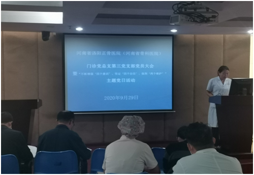 9月29日下午,门诊党总支第三党支部在影像中心会议室召开了支部党员大会暨“不断增强‘四个意识’、坚定‘四个自信’、做到‘两个维护’”主题党日活动。