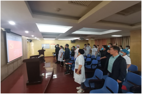 最后,宣传委员姜兆一带领全体党员重温入党誓词,全体党员进行了宣誓。