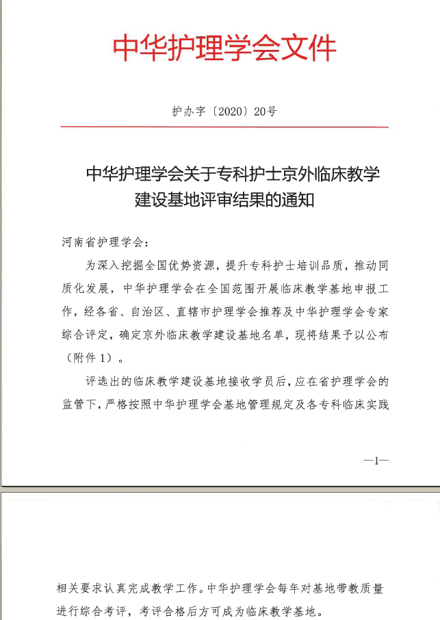 为深入挖掘全国优势资源,提升专科护士培训品质,推动同质化发展,中华护理学会在全国范围开展临床教学基地申报,我院接到申报通知以后,在院领导的高度重视和支持下,三院区护理部共同协作,成立申报小组,多次召开钉钉视频会议,精读标准,进行任务分工,大家对照申报条件,从医院及护理部管理、基地管理、基地教学管理、医院支持保障、医院及相应专科影响力等方面认真准备各项评审资料,录制评审汇报视频。最终我院被推选为中华护理学会京外临床教学基地。