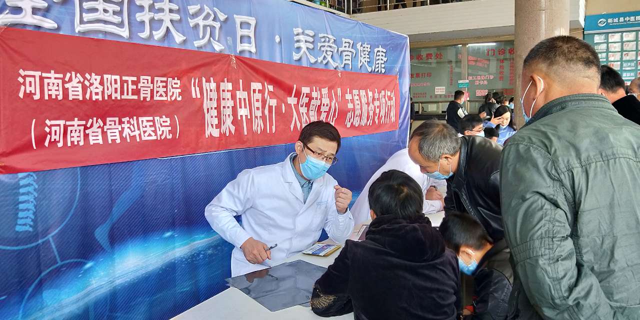 为了践行“以人民健康为中心”宗旨,深化新时代医疗卫生体制改革,充分发挥河南省建设国家中医骨伤科区域医疗中心主体单位的引领作用,提升基层骨伤科服务能力,更好满足人民群众骨健康需求,我院开展了“健康中原行?大医献爱心”志愿服务专项行动。
