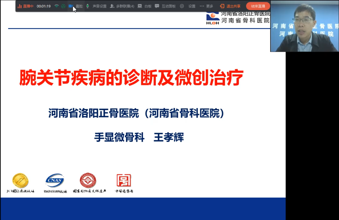 10月28日,正骨讲堂第104期钉钉线上直播开讲。本期讲堂邀请了我院手外显微骨三科主诊医师王孝辉为大家分享《腕关节疾病的诊断及微创治疗》。