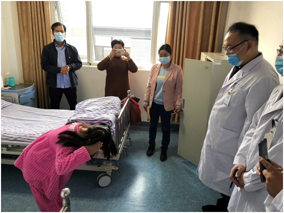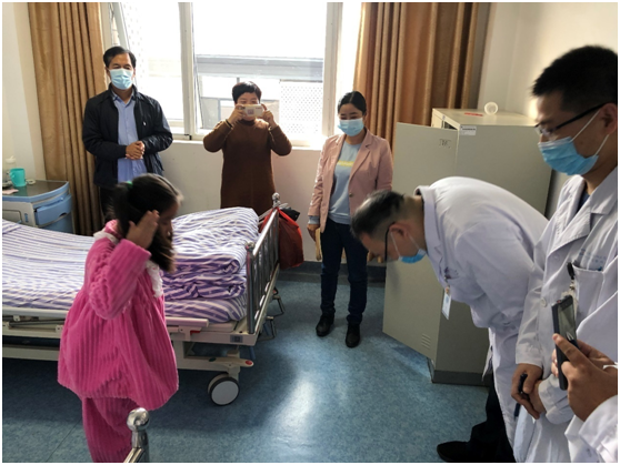 10月26日,小姑娘即将出院,在早晨陈利国主任查房时,她说:“感谢各位叔叔对我的关怀和照顾,我出院前给大家跳个舞吧。”优美的舞蹈结束后,小姑娘向陈利国主任和文永兵医师真诚地鞠躬道谢,陈主任和文医生十分感动,也欣慰地给小姑娘回礼。医生把真心付出给患者,患者将真情传递给医生,这就是医患之间最真诚的表达。