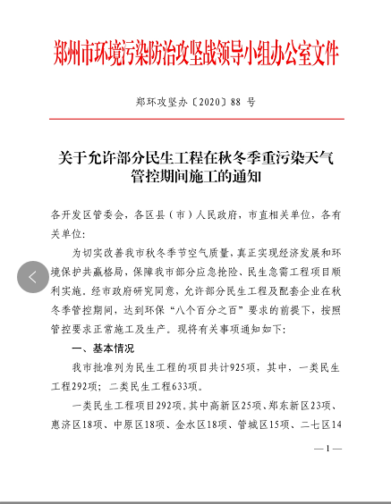 为深入贯彻习近平总书记生态文明思想,践行“绿水青山就是金山银山”的理念,按照“优先保障地铁、冬季供暖、学校、医院……影响群众回迁的安置房工程及出现安全隐患的工程项目”的原则,郑州市划定部分工程为优先保障的民生工程。