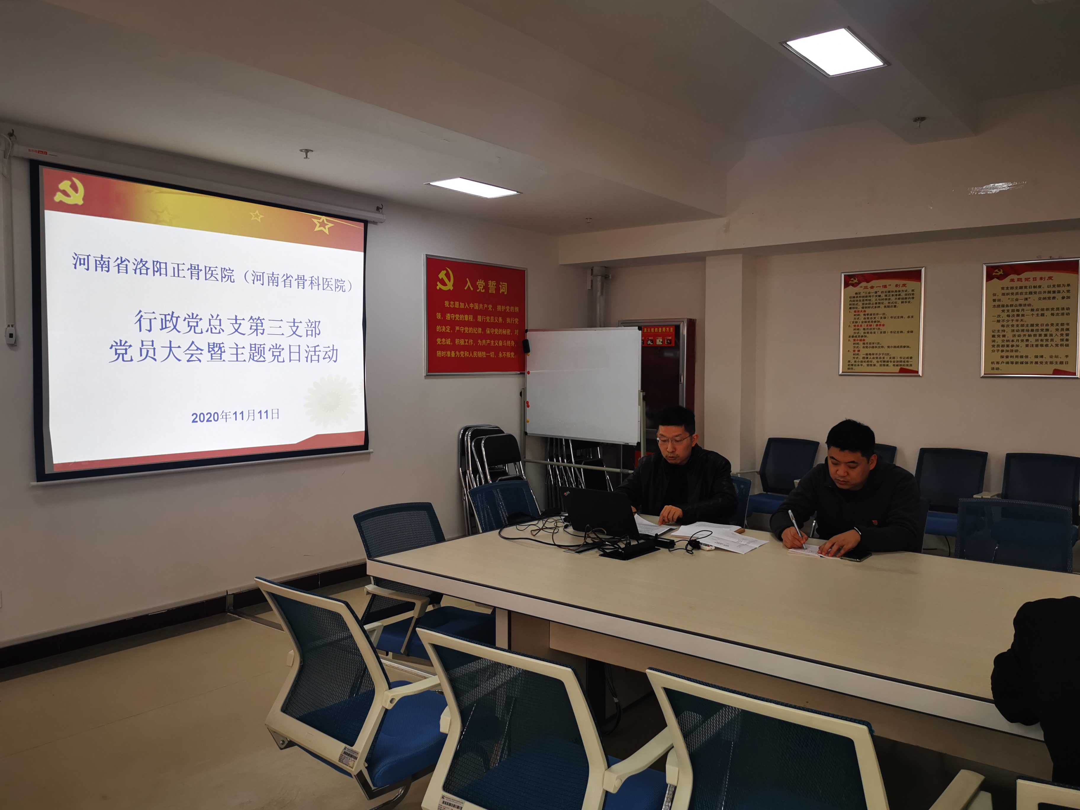 11月11日下午,行政党总支第三支部在会议中心二楼会议室召开支部党员大会暨“领悟国家十四五规划意见 为医院高质量发展建言献策”主题党日活动,会议由支部书记张鸿超主持。