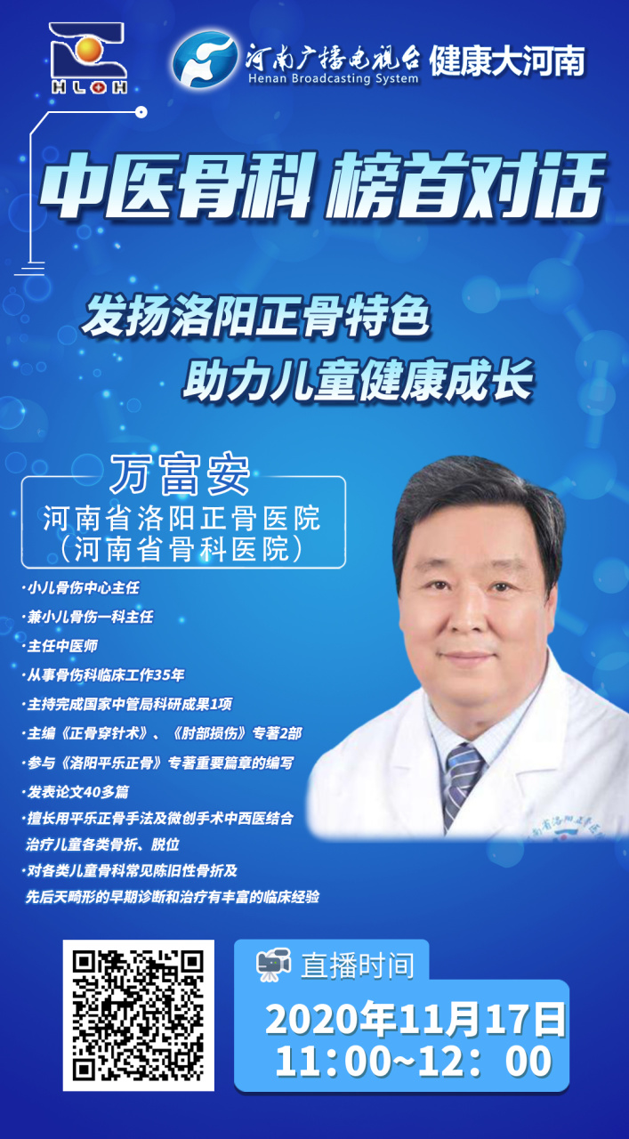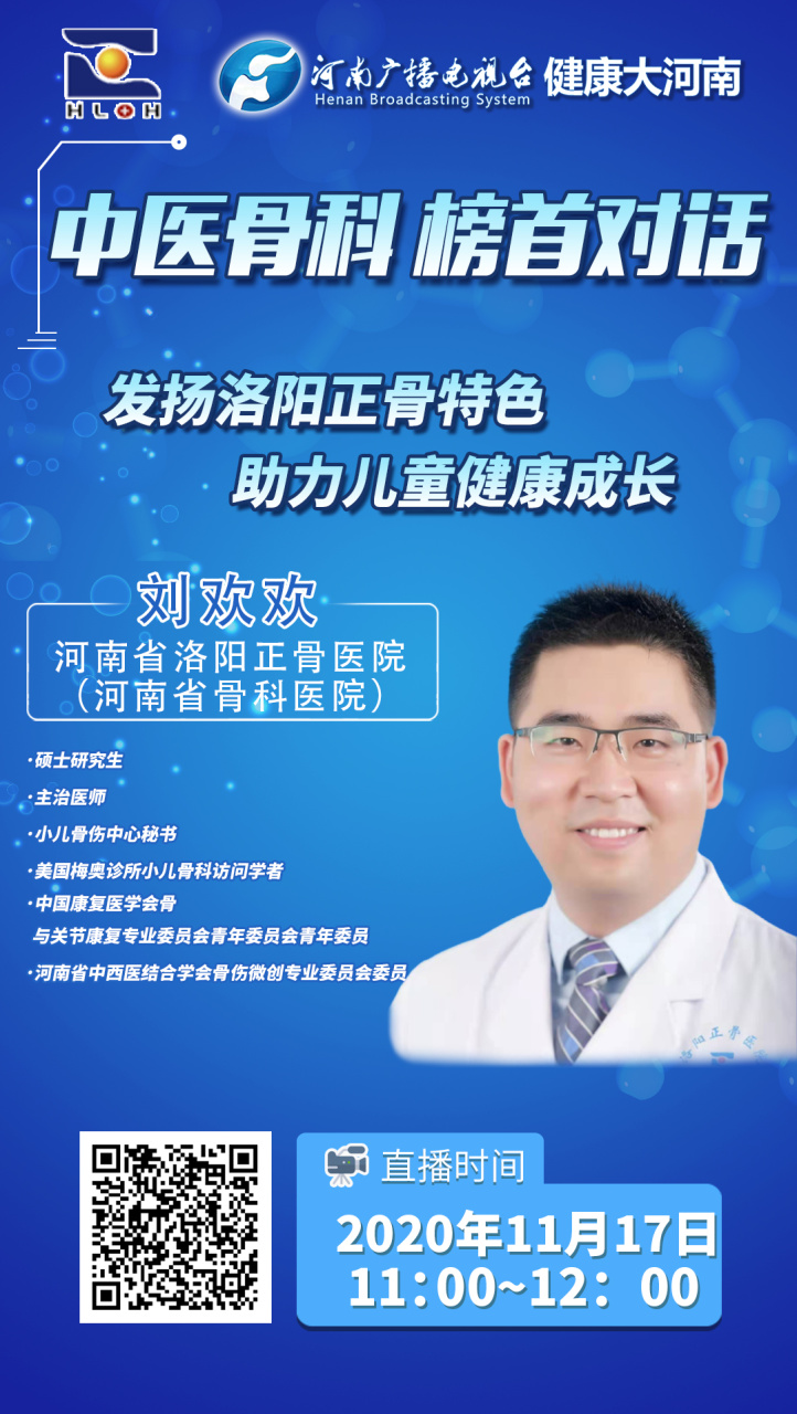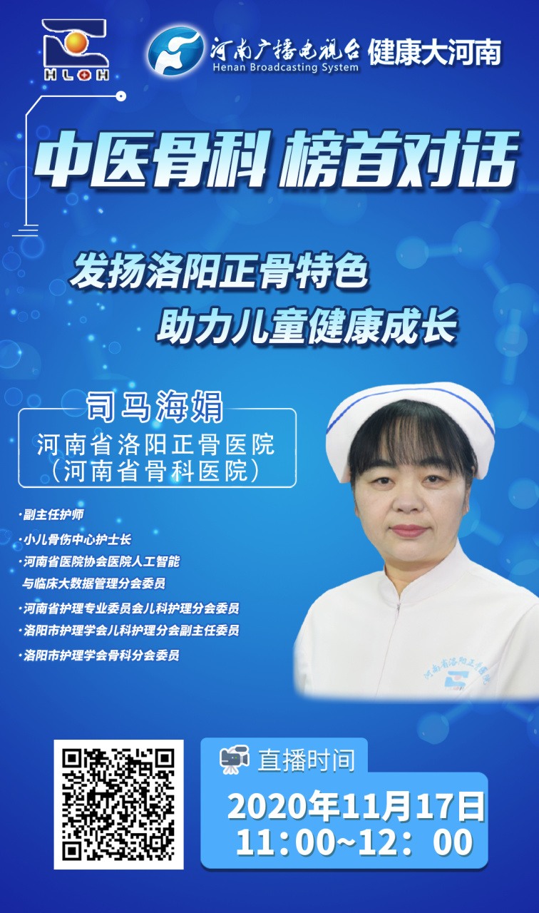 在新近发布的2020年度《中国中医院综合实力排行榜》中,我院位居年度中国中医院综合实力排行榜骨科榜首。河南广播电视台《健康大河南》栏目在榜单发布的第一时间,特别推出【中医骨科?榜首对话】系列节目。11月17日,我院小儿骨伤诊疗中心主任万富安、护士长司马海娟、中心秘书刘欢欢受邀参加专访。
