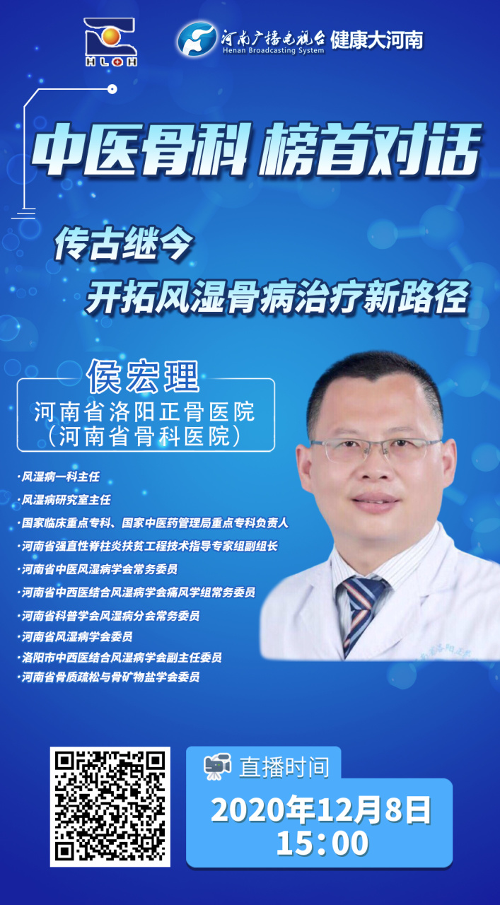 在新近发布的2020年度《中国中医院综合实力排行榜》中,我院位居年度中国中医院综合实力排行榜骨科榜首。河南广播电视台《健康大河南》栏目在榜单发布的第一时间,特别推出【中医骨科?榜首对话】系列节目。12月8日,我院风湿病诊疗中心副主任侯宏理受邀参加专访。