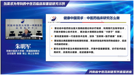 12月28日上午10点,第八期“河南省中医药科研系列直播讲座”成功举办,本期培训邀请到河南中医药大学第一附属医院院长朱明军教授进行讲座,题目为《以需求为导向的中医药临床和基础研究示例》。