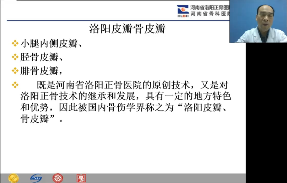 骨缺损是因创伤、手术、感染、肿瘤等原因所致骨质结构中断、骨组织缺失、短缺,会导致骨不连、延长愈合、不愈合、功能障碍、功能丧失等危害。王主任介绍了骨缺损的分类,并结合病例向大家讲解了不同的治疗方法。重点介绍了我院原创的“洛阳皮瓣、骨皮瓣”技术,结合病例展示了胫后动脉穿支皮瓣骨皮瓣与腓动脉穿支骨皮瓣。王主任强调,每一种手术都有它最佳适应症,任何一种方法都不能完全替代另一种方法,并对不同治疗方法做了对比分析。