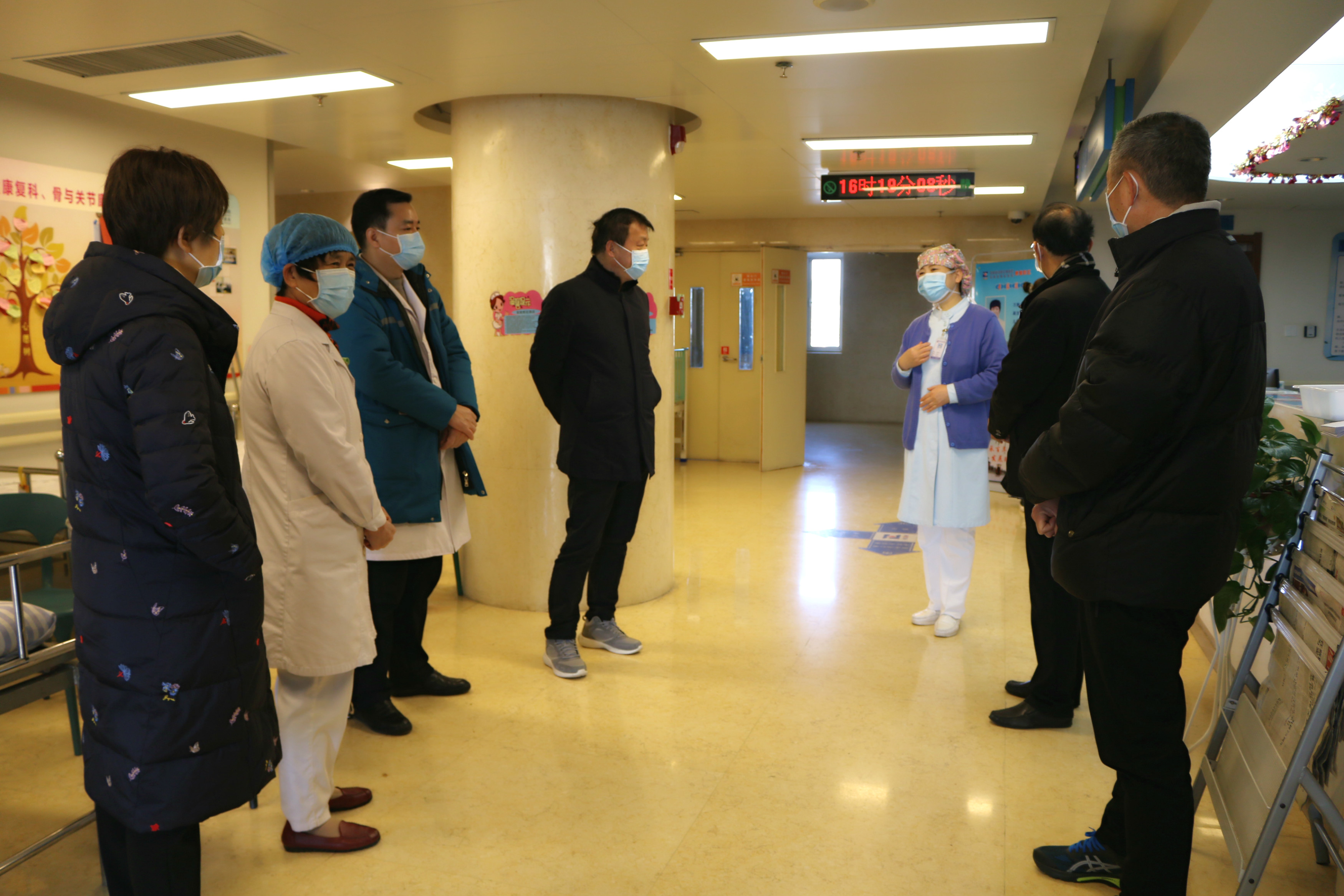 期间,秦院长一行察看了院区出入口卡点、预检分诊、隔离病房、临时隔离病房、各临床科室及康复治疗部等区域工作人员的防护装备佩戴情况并询问有关疫情防控的措施及流程。