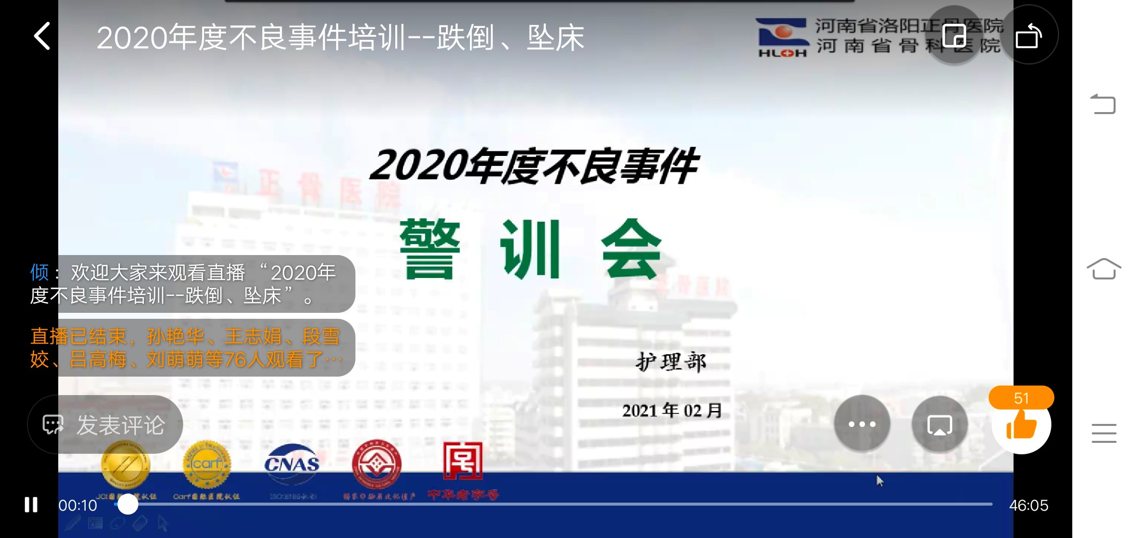 3天3场培训,累计线下100余人参培,线上直播300余人观看,目前,全院护理人员也正观看回放视频学习,同时完成近50题的随堂测试,以100%参培。