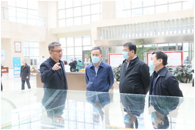 吴晓龙主席首先对张凌飞副区长的到来表示热烈欢迎,随后在一楼大厅沙盘处对郑州院区整体规划,二期的建设规模、建设进展进行了详细介绍。