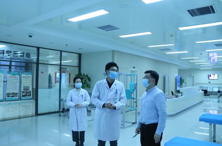 在医院门诊大厅,赵移畛主任向裴晓华院长介绍了郑州院区的建设规划情况及我院悠久的历史文化。