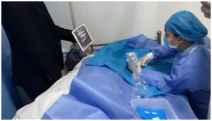 4月16日,一名70岁患者,脊髓损伤、脑出血,外周静脉血管条件差,输液困难,我院静脉小组组长,脊柱外三、七科护士长贾春霞带领小组成员张海丽成功为患者行超声引导下迷你中线导管置入术。