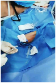 4月22日晚,核医学科一位需要输液的患者,因血管条件差,穿刺困难,经过邀请会诊,贾春霞、张海丽为该患者置管。