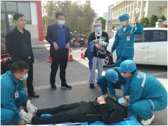4月27日下午,在曹向阳副院长和洛阳东花坛院区管委会主任宋宏卿的带领下,医务部组织了一次院外、院内急救演练。我院急诊科人员在接到洛阳市120急救指挥中心的指令:在二广高速洛阳瀍河下站口,发生了一起车祸,两名伤者急需抢救。我院急诊科反应迅速,及时到达现场,对伤者进行伤口包扎、夹板固定、搬运等。医护人员返回医院急诊科后,请求骨盆髋臼科、脊柱外科、手外科、内科等人员到急诊科进行紧急会诊。各科室接到紧急会诊电话给后都迅速到达急诊科,对伤者展开多学科联合诊治。