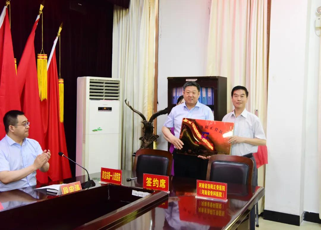 宋宏卿主任与郭振水院长签订医联体单位协议,向洛阳正骨医联体新成员授牌。