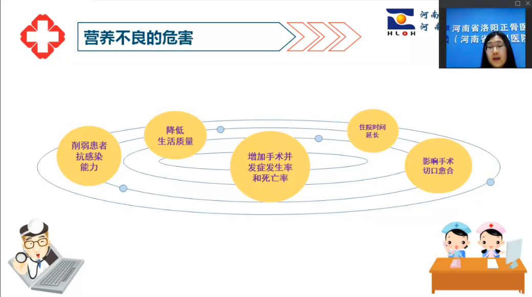 2021年6月9日下午四点,正骨讲堂第125期钉钉线上直播开讲。本期讲堂特邀请我院住院部(营养科)的临床营养师王桃梅为大家分享《住院患者的营养支持》。