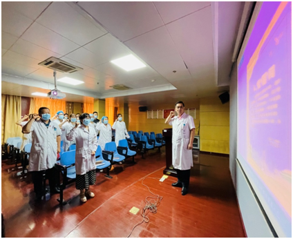 最后,郭会利书记带领大家重温入党誓词。郭书记强调,通过党史学习,提高思想觉悟,积极采取行动,促进各项工作向前发展。