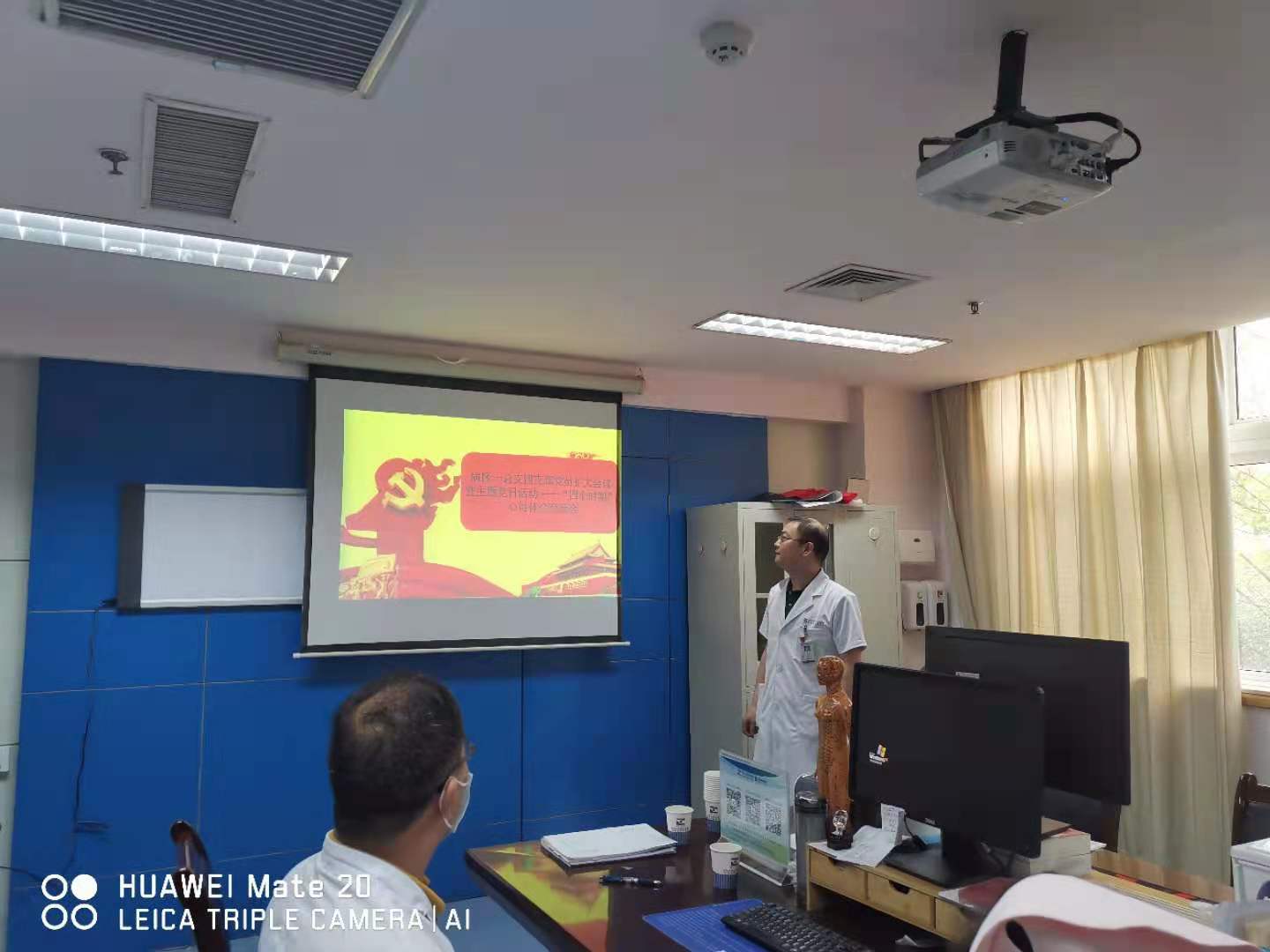 冯卫华书记通过PPT形式带领大家一起回顾我们党的四个时期:新民主主义革命时期;社会主义革命和建设时期;改革开放和社会主义现代化建设新时期;中国特色社会主义新时代。在这四个历史时期,中国共产党完成和推进了四件大事:1.开天辟地:中国共产党在新民主主义革命时期完成救国大业。2.改天换地:中国共产党在社会主义革命和建设时期完成兴国大业。3.翻天覆地:中国共产党在改革开放和社会主义现代化建设新时期推进富国大业。4.惊天动地:中国共产党在中国特色社会主义新时代推进并将在本世纪中叶实现强国大业,四件大事铸就了中国共产党百年辉煌。