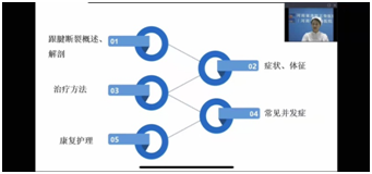 王巧护士长首先从跟腱断裂的定义、解剖、症状和体征、治疗方法及常见并发症方面做简单概述;然后重点讲述了康复护理,包括术后体位护理、术后观察要点、支具固定护理要点及佩戴方法、常见并发症护理及术后康复计划等方面,内容科学规范、详实全面,方法简便易懂。