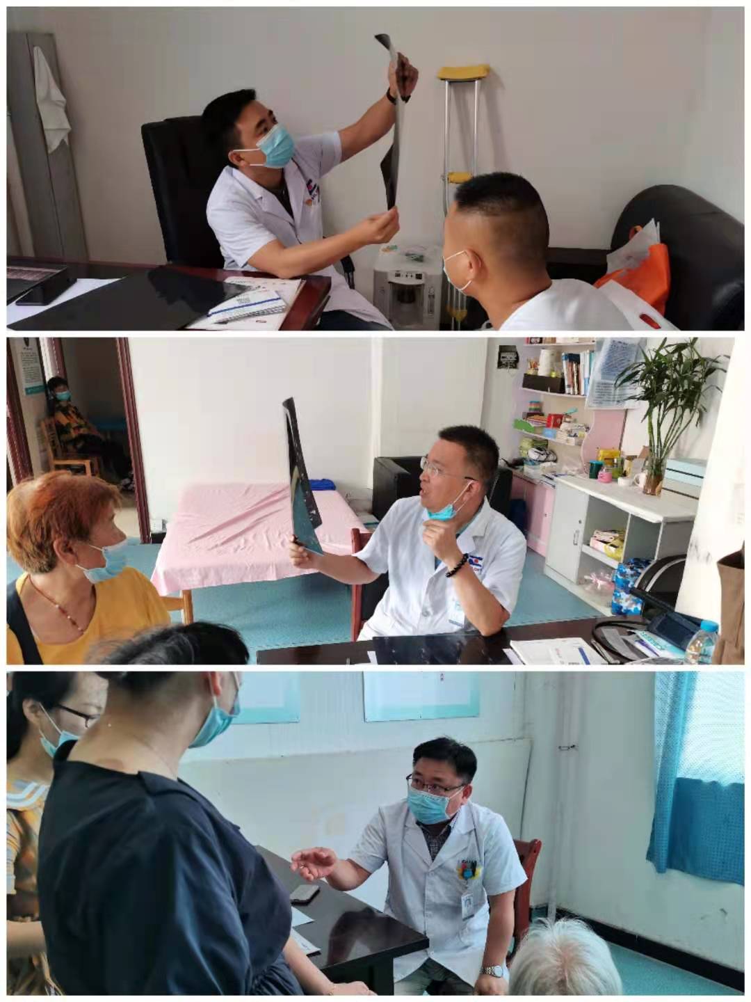 与学术活动同步,郑州院区党总支各支部医护专业团队赵志强、莫湘涛、王春喜、刘立云、王玉辉、王琳璘、水根会、李小玲、谢梦、赵梦艺等在驻马店仁和创伤显微外科医院开展义诊、中医护理贴耳穴等送医活动,孙永强教授、朱卉敏教授在学术活动间隙也加入义诊送医活动,为慕名而来的关节、脊柱患者诊查、会诊。上午的送医活动一直持续到中午,天气炎热,虽然大家忙得连口水都顾不上喝,但没有一个人说累,大家一致认为能参加活动为驻马店群众办点力所能及的实事,非常值得!