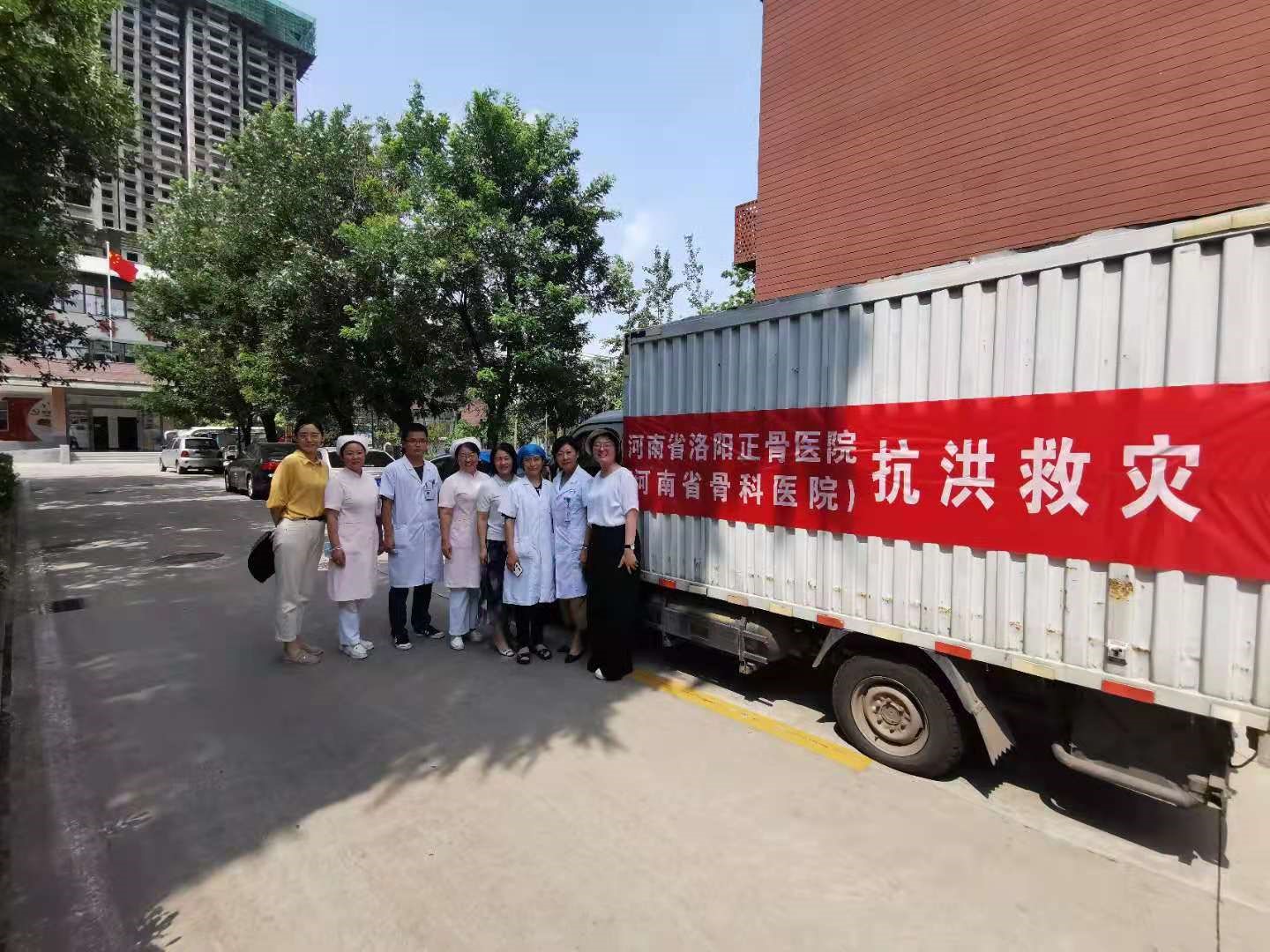 收到捐款的第一时间,支部党员宋翠玲冒着酷暑先后两次赶到关林市场,及时选购灾区最为急需的救灾物品:166条夏凉被、200条连体皮水裤、50箱84消毒液等。王健智书记和宋晓征老师更是在繁忙的工作之余,不顾个人疾病,全面周到地张罗安排,同医院其他同志协调,于最快速度由医院自发组织联系的捐赠车辆将救灾物资送达鹤壁、辉县及新乡等灾区,为灾区人民解燃眉之急。