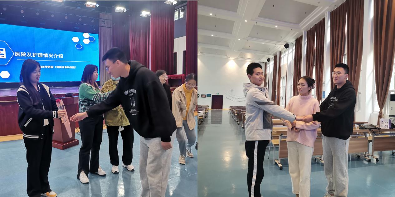 传承正骨文化,学习正骨精神,11月1日上午由护理部齐然带领新入职护士对我院东花坛院区及康复院区进行了参观了解,帮助新入职护士对医院有了初步了解。下午护理部组织新护士观看医院宣传片,并精心设计了开场破冰环节,护理部副主任焦瑞娜积极参与其中,通过分小组依次自我介绍及“松鼠——大树”的游戏消除紧张、突破距离,增进了新同事彼此之间的了解。