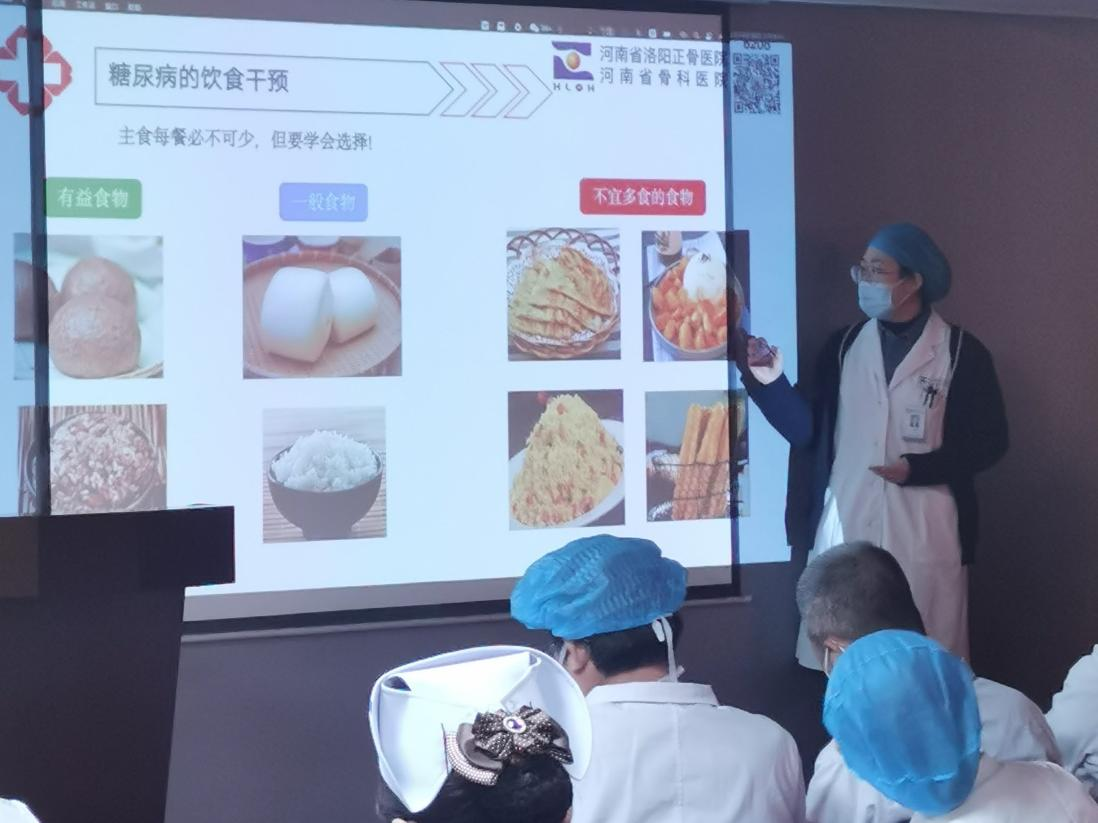 2021年11月18日上午,住院部(营养科)来到膝关节外科诊疗中心,开展临床营养科普讲座活动。临床营养师王桃梅为膝关节外科诊疗中心的医护人员进行了《住院患者的营养支持及糖尿病患者的饮食控制》为主题的营养宣教。