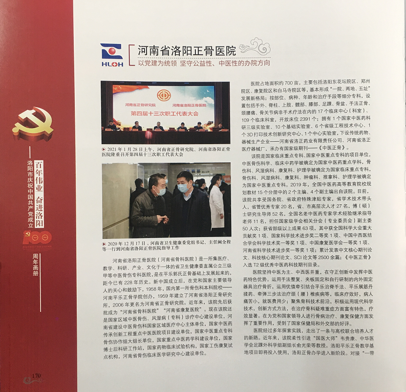 近日,我院入编的由洛阳日报报业集团编辑出版大型纪念画册《百年伟业 奋进洛阳》正式出版。