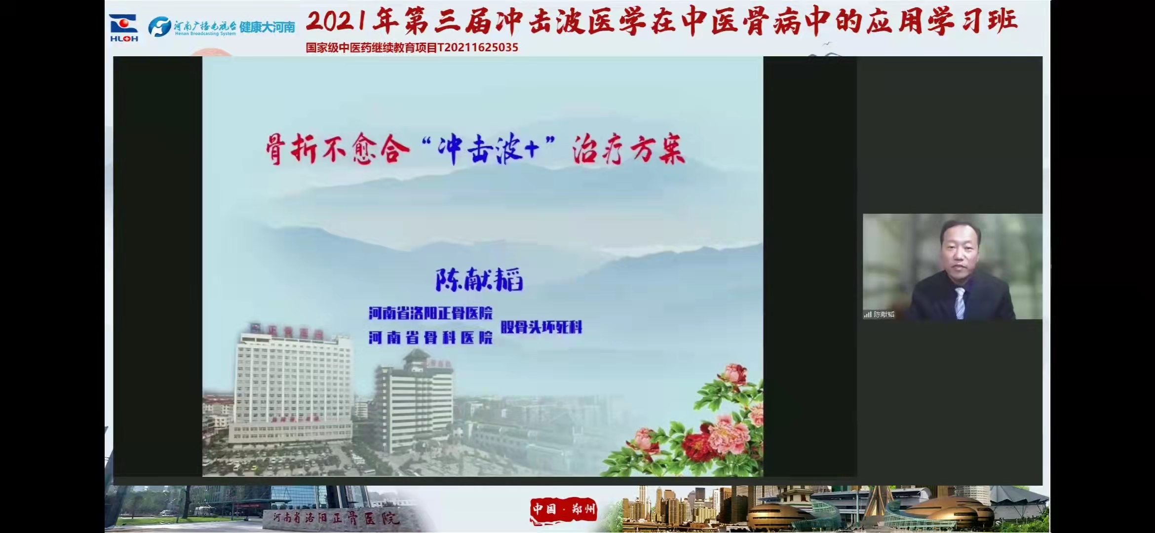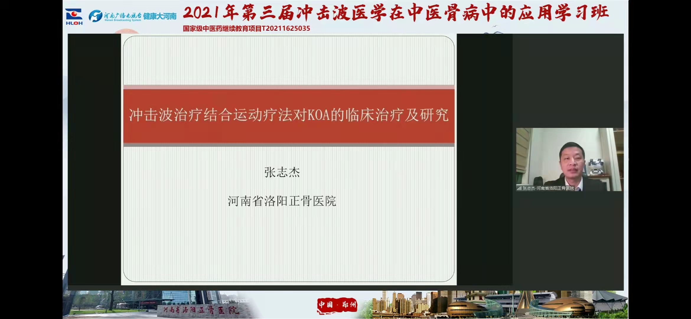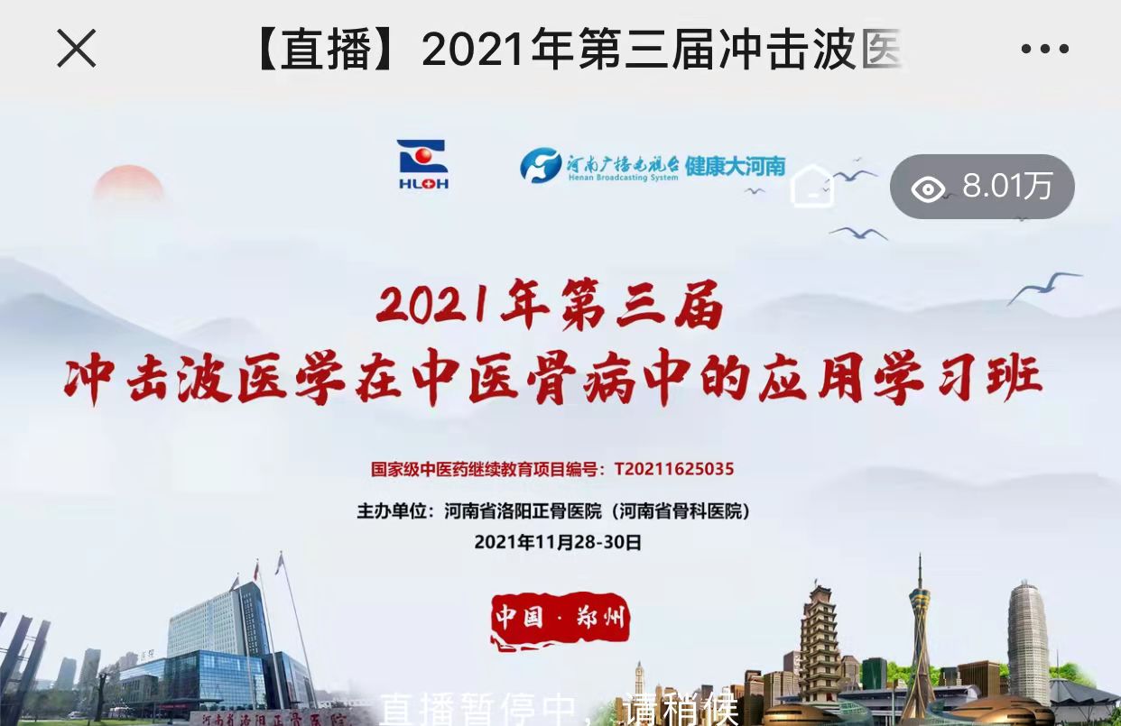 为推广我省冲击波医学在中医骨伤领域、骨坏死领域、康复医学、疼痛医学、运动医学等领域临床应用的新问题及新进展,2021年11月28日,由我院主办的国家中医药继续教育项目“冲击波医学在中医骨病中的应用学习班”利用“健康大河南”网络直播平台以线上直播形式成功举办。